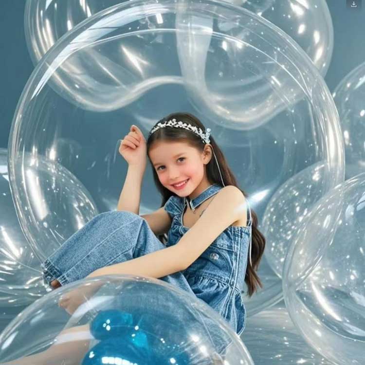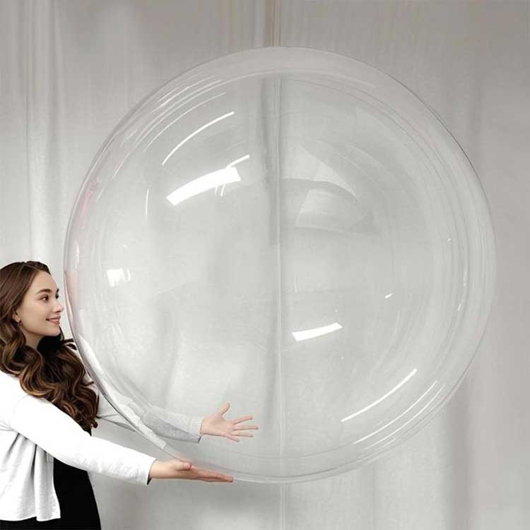 48 tuuman pyöreät kirkkaat Bobo-ilmapallot voivat mukautua erilaisiin ympäristöihin. Kun ne yhdistetään 10 LED-valonauhan kanssa ja täytetään heliumilla, ne voivat luoda valoefektin. Näitä ilmapalloja voidaan käyttää kaupallisiin näyttelyihin tarkan markkinoinnin saavuttamiseksi; niitä voidaan käyttää myös lasten juhlien täyttämiseen värikkäillä vaahtomuovilla tai höyhenlehdillä. äskettäin pidetyissä häissä käytettiin 100 mittatilaustyönä valmistettua 48 tuuman pyöreää läpinäkyvää kuplailmapalloa, jotka saivat paljon kiitosta.