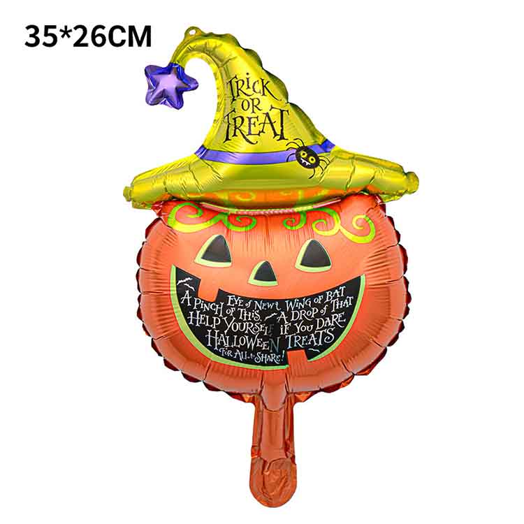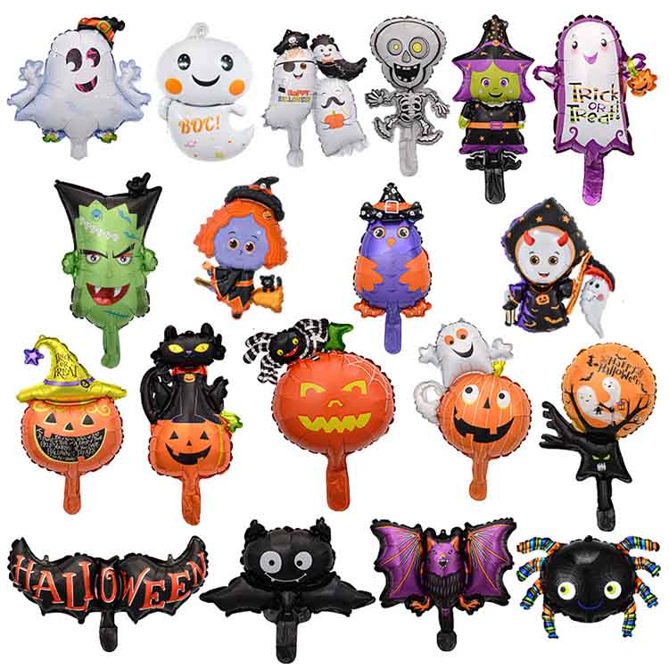 Tämä alumiinielokuvien ilmapallo yhdistää klassiset Halloween -elementit, kuten kallo, kurpitsan lyhty, lepakot, hämähäkit jne. Sarjakuvamuoto on söpö ja hieman outo. Pienikoko voi helposti luoda vahvan juhlallisen ilmapiirin riippumatta siitä, ripustetaanko se yksin vai asetetaan yhdistelmään.