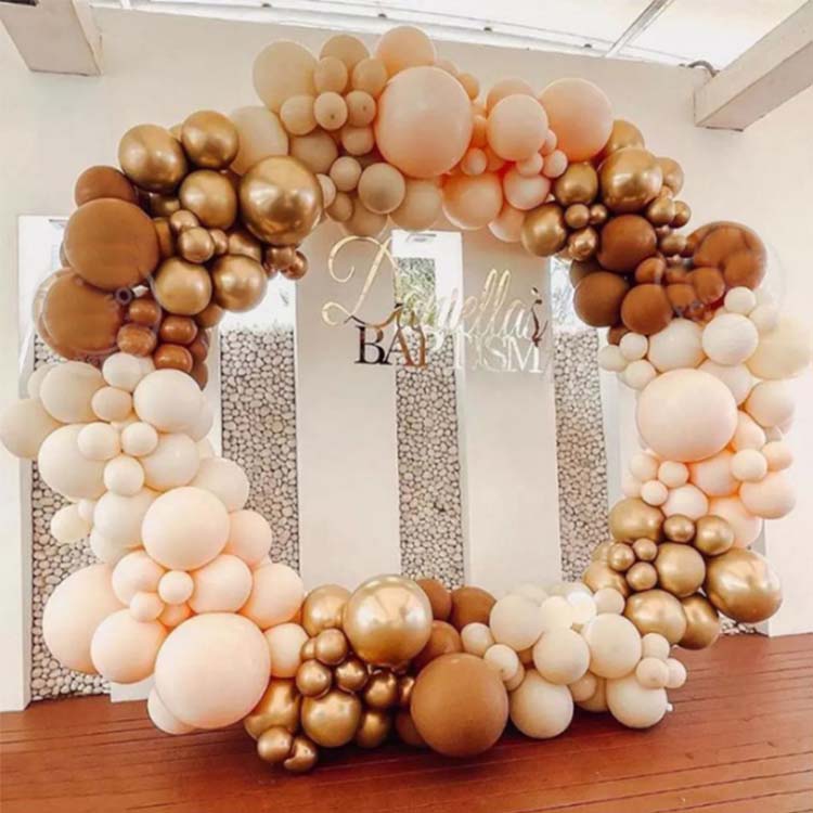 Ilmapallokaarisetti sisältää yli 100 lateksipalloa, liimapisteitä, ilmapalloketjuja, solmukoneita ja logollisia pakkauspusseja. Tarjoamme eri tyylejä ilmapalloja saavuttaaksemme kaaren upean värivaikutelman. Se soveltuu erilaisten juhlatilaisuuksien taustakoristeeksi, kuten valmistujaisiin, häihin, syntymäpäiviin, yritysten vuosipäiviin ja soveltuu sisä- ja ulkotiloihin.