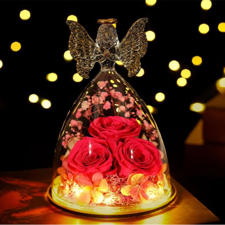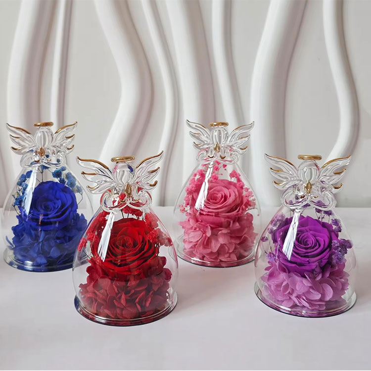 Säilötyt kukat lasienkeli-säilöttyssä kukkalahjassamme eivät ole keinotekoisesti syntetisoituja, vaan aidoista kukista.Newshine®:llä on yli 20 vuoden kokemus tehdastuotannosta.Valitsemme laadukkaat, tuoreet kukat omasta istutuspohjastamme ja käsittelemme ne monimutkaisilla ja tarkoilla tekniikoilla.Säilyttää aitojen kukkien muodon ja värin, estää tehokkaasti kuihtumista ja sallii kukkien kukkimisen 3 vuoteen.