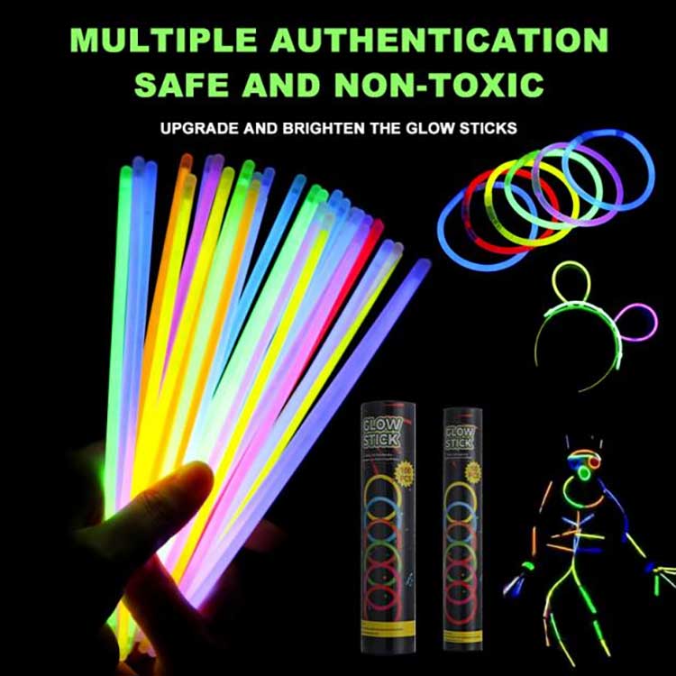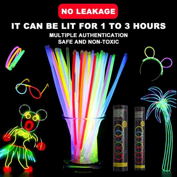 Glow stickt on päivitetty kirkkaampaan ja katseenvangitsevampaan väriin. Se voi pysyä valaistuna 1-3 tuntia. Fluoresoivissa puissa käytetyn fluoresoivan materiaalin pitoisuus on korkea, mikä johtaa pitkäkestoiseen ja voimakkaan hehkuun.