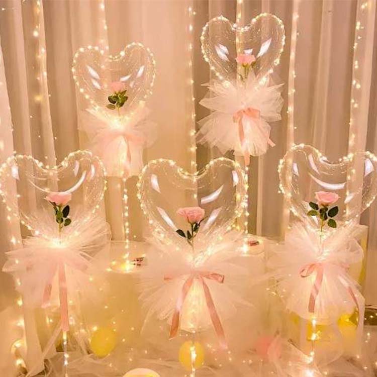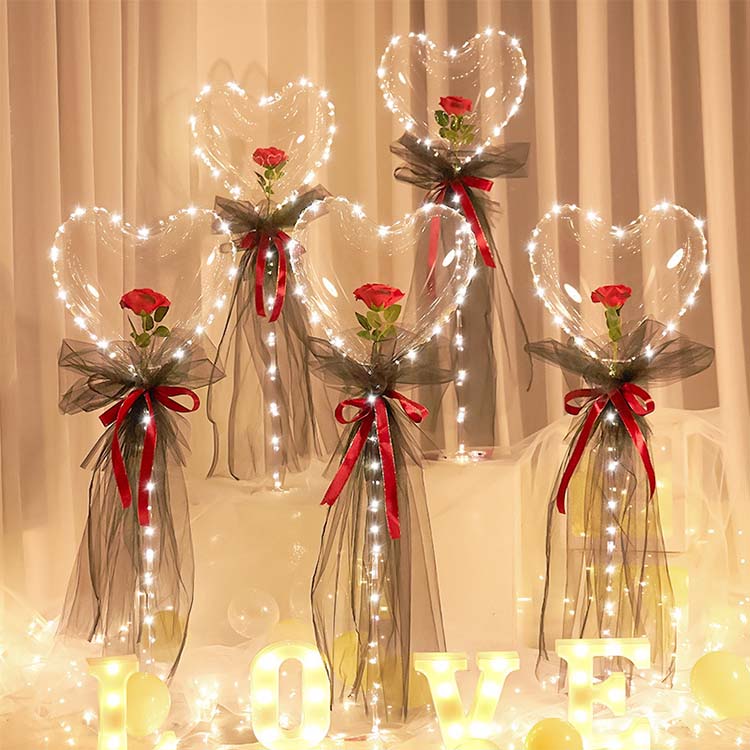 Koristeelliset tarvikkeet: Yleensä,Sydänmuotoiset Bobo Rose -sarjatliittyy joitain koristeita, kuten pitsilanka, kevyet nauhat, ilmapumput, akut jne. Pitsi voidaan kääriä Bobo -pallon ja ruusun ympärille lisäämällä virtaavan ja romanttisen ilmapiirin kokonaisuuteen; Nauha voi säteillä pehmeää valoa yöllä tai hämärissä olosuhteissa, mikä tekee koko asusta unenomaisemman ja viehättävämmän.