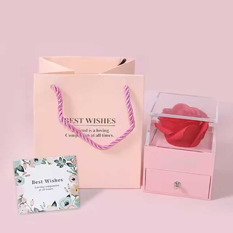 Immortal Flower Gift Box on suosittu tuote. Sen lisävarusteet on valmistettu laadukkaista materiaaleista.Jokaisessa lahjarasiassa on kirkas ruusu ja hienoja koruja. Kun saat ne, voit käyttää niitä suoraan ilman, että sinun tarvitsee asentaa niitä itse. He voivat ilmaista tunteesi täysin ystävillesi tai sukulaisillesi, mikä tekee seremoniastasi täynnä romantiikkaa ja yllätyksiä.