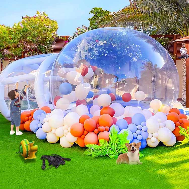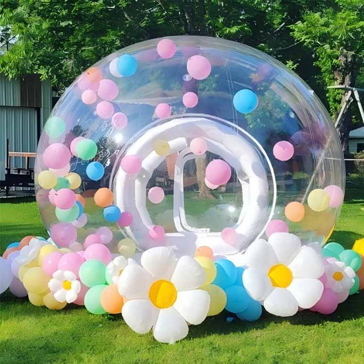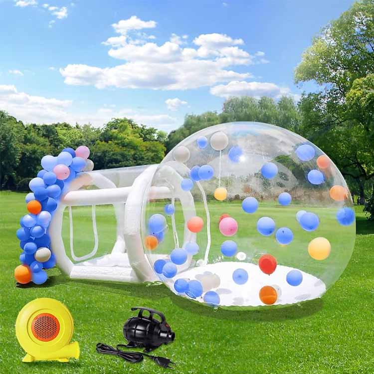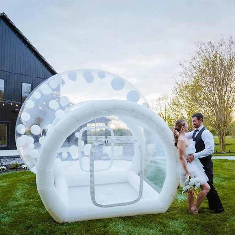 Newshine® -valmistaja tarjoaa erilaisiapuhallettavat kuplatalotvastata erilaisiin tarpeisiin. Puhallettavia talojamme on saatavana erikokoisina, mukaan lukien 2,2 m, 3M, 3,5 m, 4m ja 5mkuplatalot. Eri halkaisijat soveltuvat eri avaruuskokoihin ja käyttöskenaarioihin. Esimerkiksi 2,2 metrin kuplatalo on pieni ja hieno, ja sitä voidaan käyttää henkilökohtaisena meditaatiotilana tai ainutlaatuisena osastona pienyritysten näytöille; 3M-3,5 m: n puhallettavalla kuplateltalla on suhteellisen tilava tila, joka sopii lämpimän ulkopari-lepoalueen luomiseen romanttiseen iltapäiväteetä varten tai sijoitetaan luonnonkaunis kohtaan erikoispaikkana turistien pitämiseksi lyhyen tauon ja nauttimaan ympäröivästä kauneudesta; 4M-5m iso yksittäinen kuplatalo voidaan muuttaa pieneksi ulkokäyttöhuoneeksi tai juhlatilaan, joka mahtuu useisiin ihmisiin yhteisiin aktiviteetteihin liiketoiminnan neuvottelujen tai ystävien kokoontumisten tarpeiden tyydyttämiseksi.