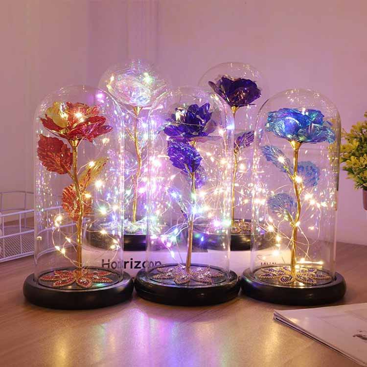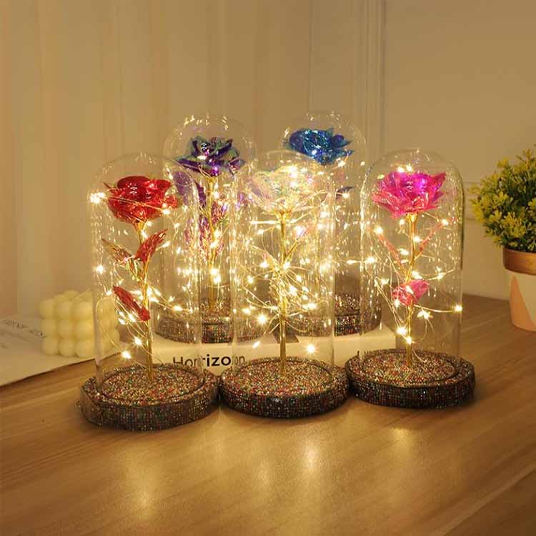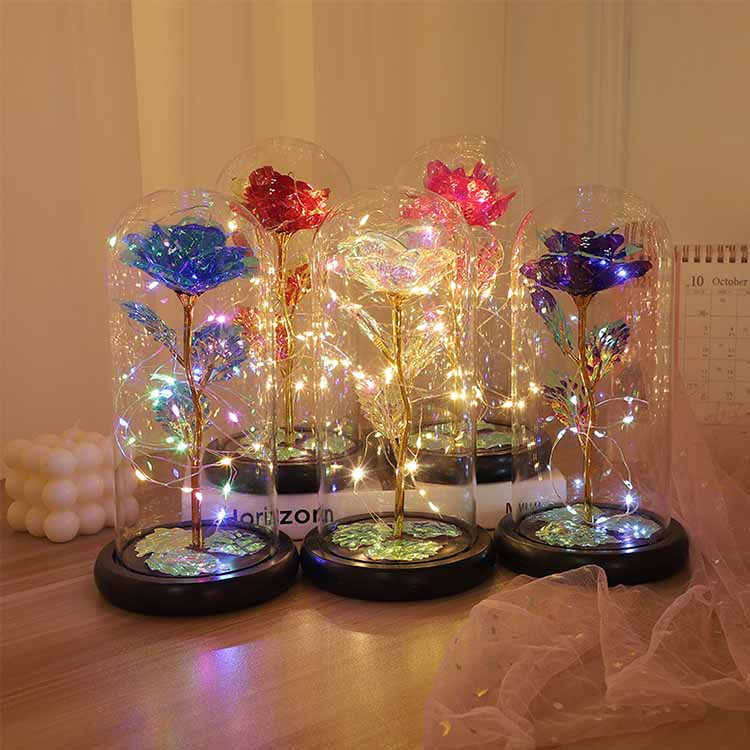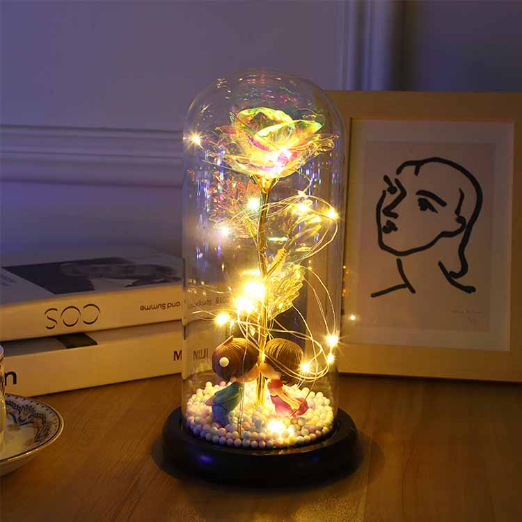 LED 24K lasi nousi suojakotelon sisällä, Meillä on monia nukkeja ja leluja. Asiakkaat voivat valita suosikkinukkensa ja kukkien värin, joista he pitävät. Voimme muokata niitä tarpeidesi mukaan.
