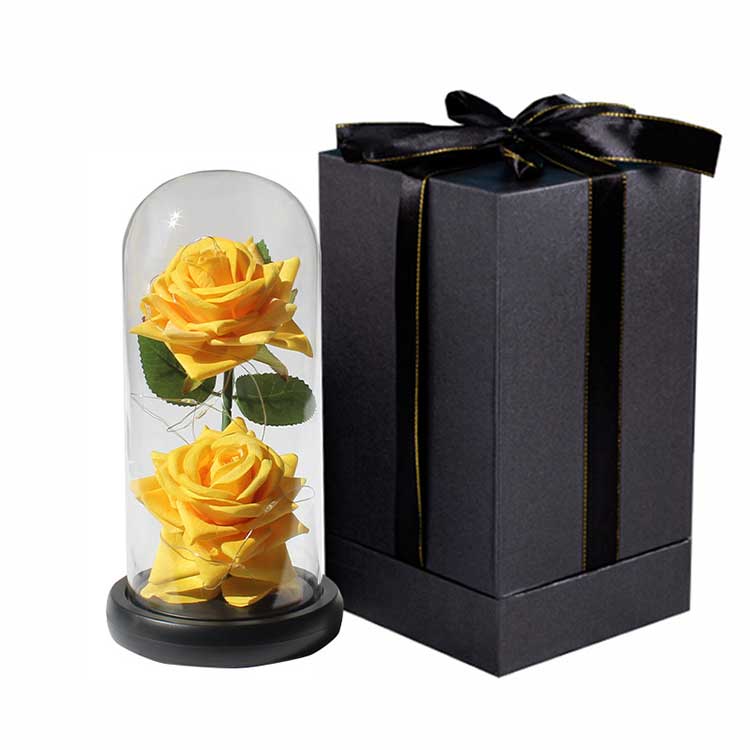 Tarjoamme PVC- ja samettiterälehtiä, ja sisustusta voidaan räätälöidä erilaisilla pienillä figuureilla tuotteen houkuttelevuuden lisäämiseksi. Toisin kuin tuoreet kukat, jotka vaativat kastelua ja karsimista, tämä ei vaadi huoltoa. Pyyhi lasikupu ajoittain pehmeällä liinalla pitääksesi sen puhtaana ja uutena, joka sopii täydellisesti nykypäivän nopeatempoiseen elämäntyyliin.