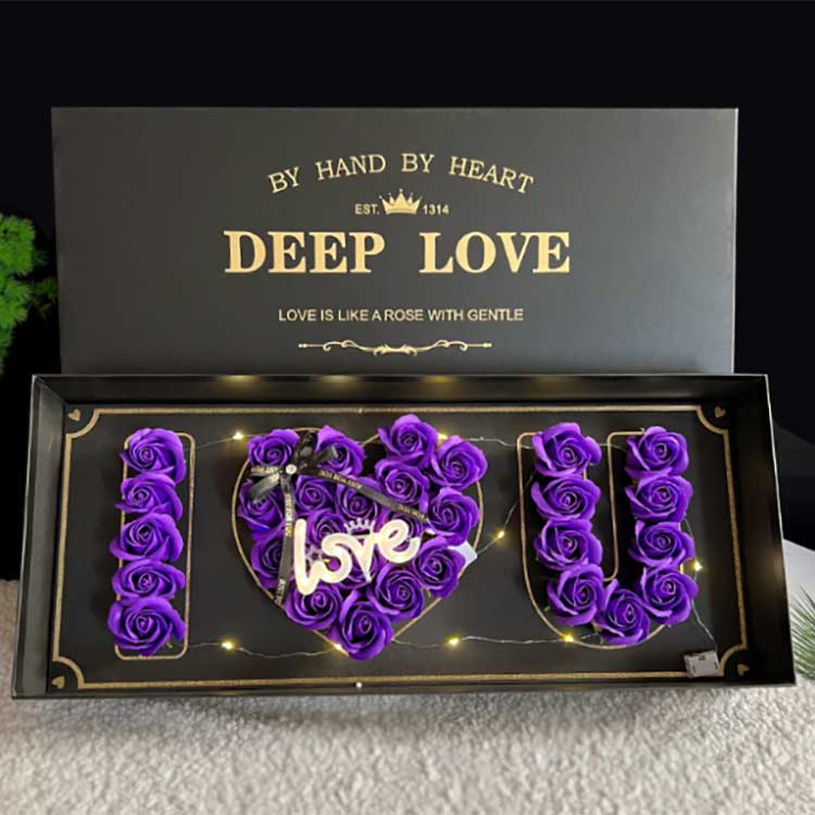 Nämä kukat on valmistettu saippuakukista. Niiden raaka-aineet ovat luonnollisia öljyjä ja kasvien eteerisiä öljyjä, jotka ovat myrkyttömiä ja ympäristöystävällisiä. LED-valot ovat lämpimän värisiä, mikä tekee tunnelmasta entistä kodikkaamman. Räätälöity ruusulahjarasia on valmistettu laadukkaasta ja kovasta kartongista, joka on kestävää eikä vaurioidu. Se parantaa sekä tuotteen ulkonäköä että todellista laatua.