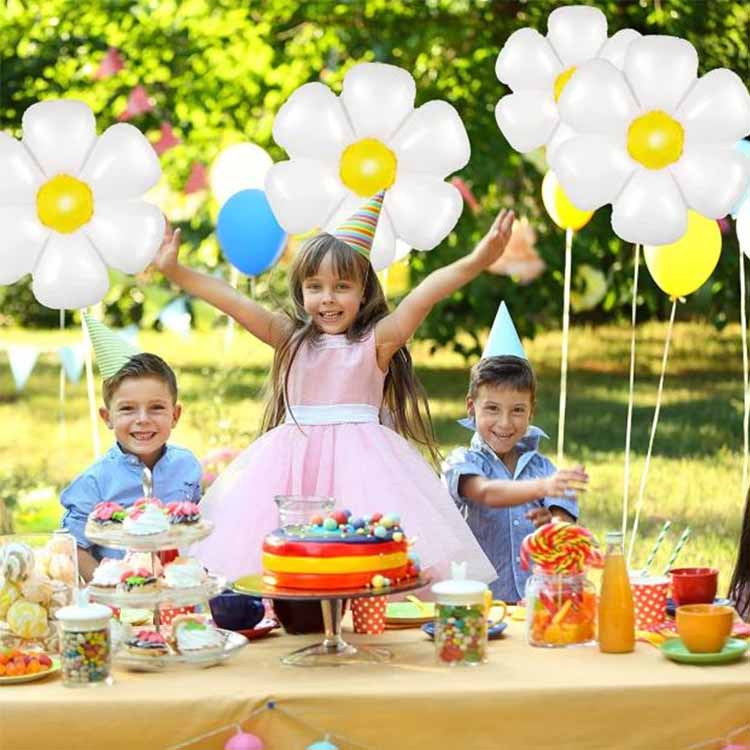 Syntymäpäiväjuhlat: Olipa se syntymäpäivä lapsille tai aikuisille, kuuden prosentin päivänkakkarafoliopallot voivat tuoda juhliin onnellisen ja lämpimän ilmapiirin. Katto, seinät, ruokapöytä ja muut juhlapaikan paikat voivat myös tehdä ilmapalloja ilmapallokaareihin, ilmapallo -sarakkeisiin ja muihin muotoihin tai antaa lasten ottaa valokuvia ilmapalloilla.