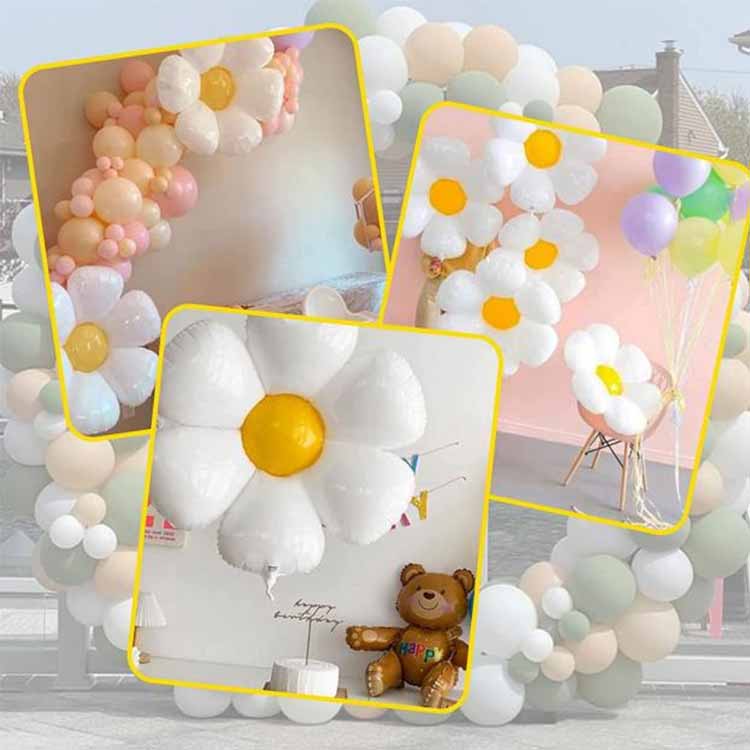 Ulkonäkö: Inspiraatio ilmapallojen luomiseen tulee päivänkakkaroista. Yleensä on kuusi terälehtiä. Terälehtien muoto ja väri voidaan säätää kuvion mukaan. Yleisesti käytetään valkoisia, vaaleanpunaisia, keltaisia, violetteja jne. Rikkailla väreillä, jotka voivat luoda romanttisen, raikkaan ja iloisen ilmapiirin.