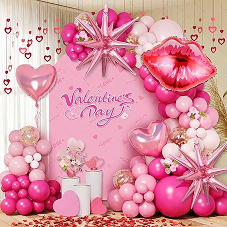 Ympäristöystävällinen ja uudelleen käytettävä: Ystävänpäivän ilmapalloseppelesarja sisältää biologisesti hajoavia lateksipalloja ja uudelleenkäytettäviä folioilmapalloja, jotka voidaan tyhjentää.