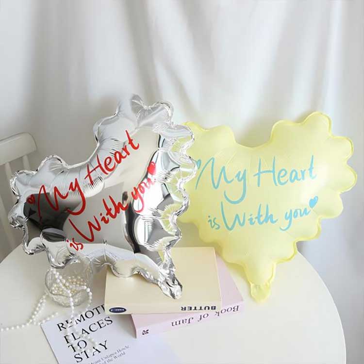 1. Ainutlaatuinen muotoilu: aaltoilevat reunat tuovat luovan käänteen sydämen klassiseen muotoon, jolloin se erottuu tavallisesta ilmapallosta.